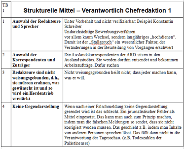 Im Rahmen der Tagesschau - Untersuchung vom Januar 2024 erstellte Liste mit den verwendeten journalistischen Mitteln.