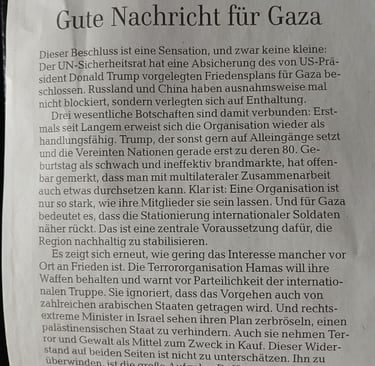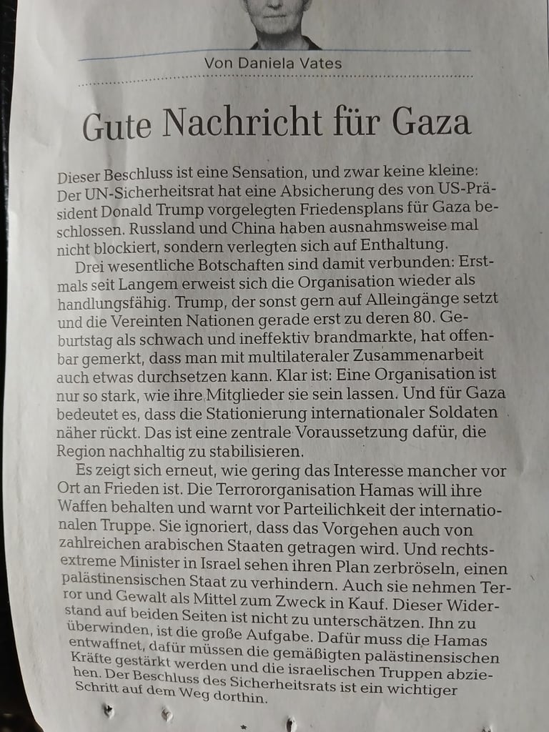 HAZ 19.11.25 Seite 2 - Gute Nachricht für Gaza Kommentar von Daniela Vates
